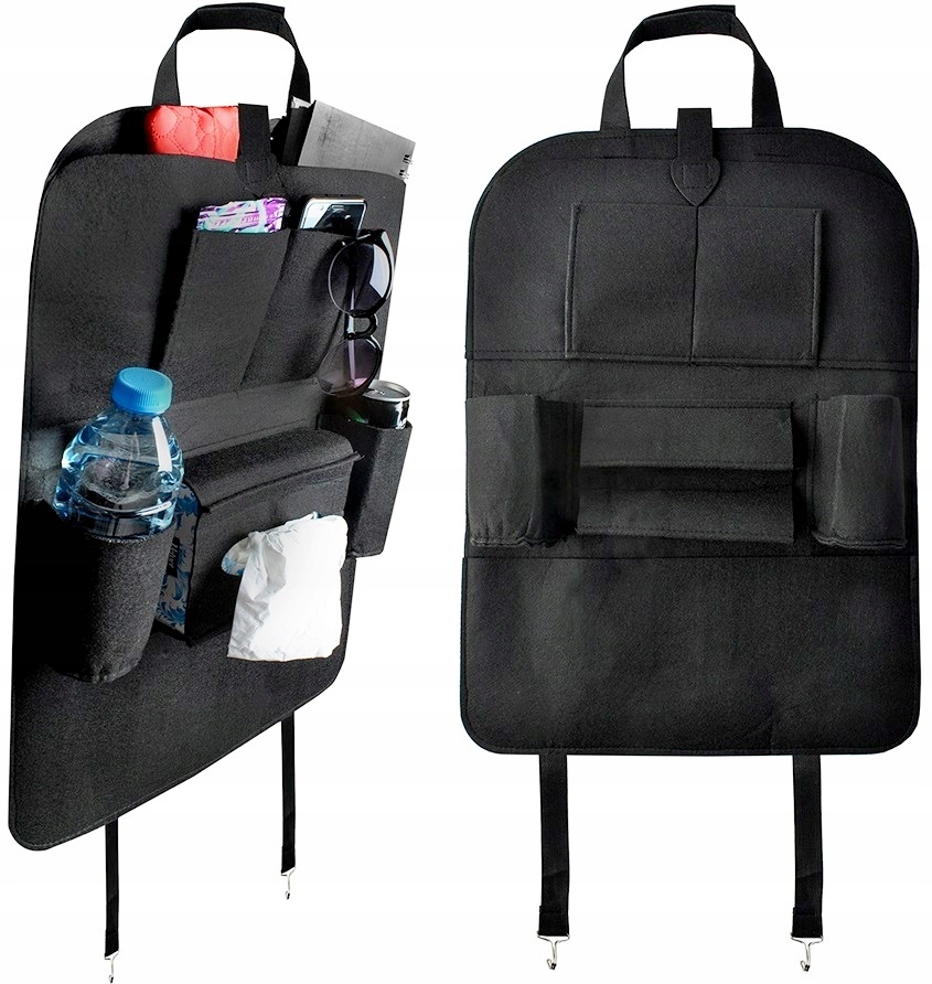 The correct organization of things in the car, especially when traveling with children, is not only the ability to efficiently control various situations, but also a greater chance of maintaining order. The car seat organizer is an accessory that can be easily attached to any car with the Velcro fastener and straps with metal hooks. It also guarantees stable holding of the items stored in it.