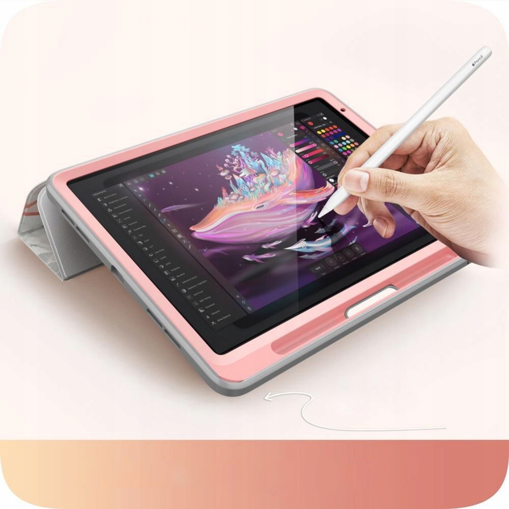 Unique closed case that provides amazing protection. Made of a combination of shock-absorbing TPU and polycarbonate that stiffens the entire structure, it protects against falls and impacts. Perfect for all extreme situations. The closed flap can be folded as a stand, making watching movies or writing much more convenient. The flap automatically turns the display on and off when opened, which saves the battery in the iPad.