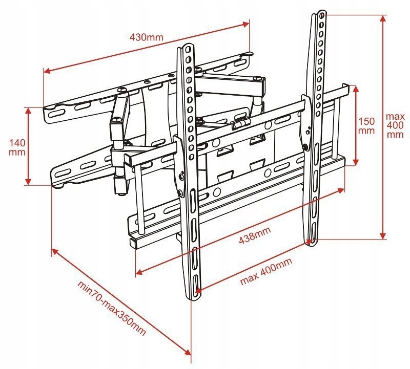 Maximum mounting size for TV / Monitor: 400x400mm