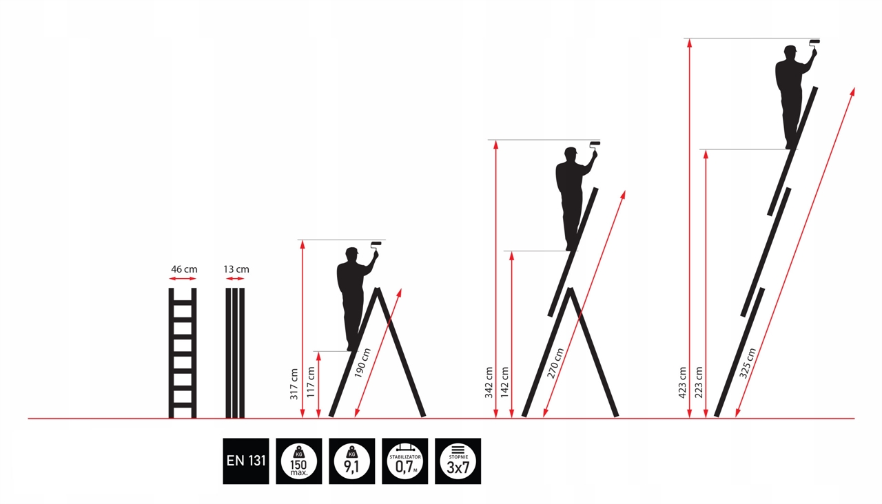 MULTIFUNCTIONAL / INDUSTRIAL ladder - THREE SEGMENTS, each with 7 rungs