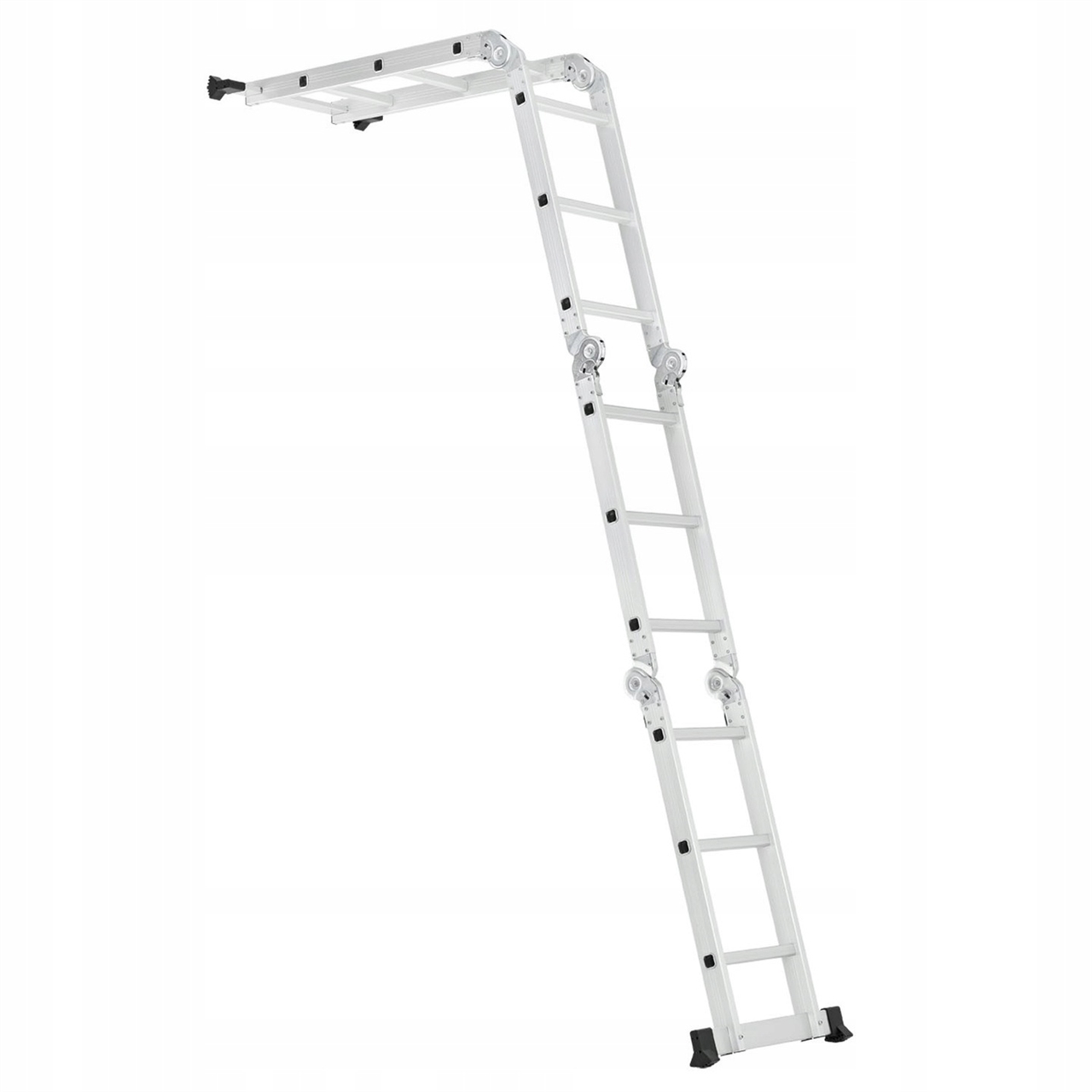 A multifunctional aluminum ladder makes it much easier to work at high heights. When fully extended, it reaches a height of 4.70 m. This makes it easy and quick to reach higher places such as ceilings, gutters or tree tops.
