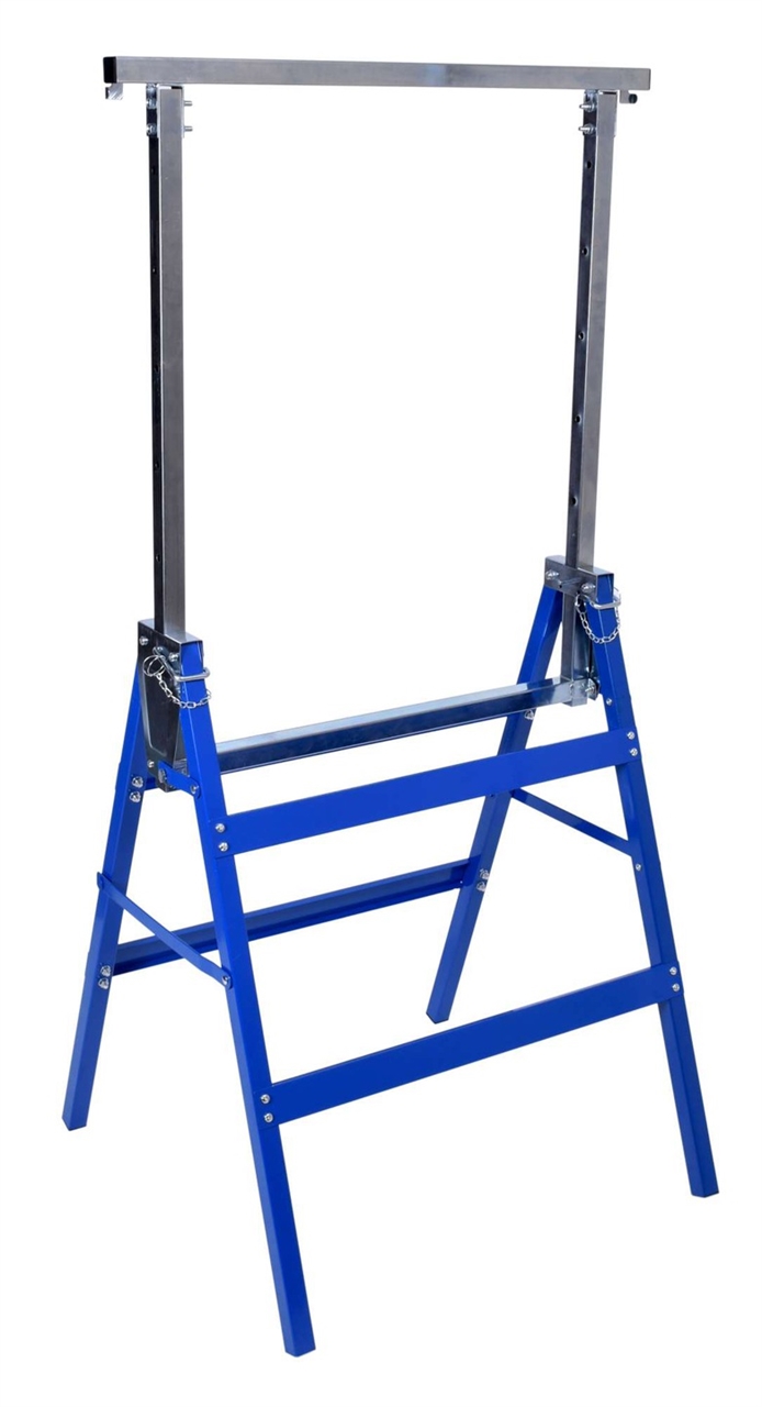 Foldable workshop stand with adjustable height, ideal for work in garages, workshops or workplaces. A solid metal structure made of a square section will ensure durability for a long time. It is equipped with a double locking system in the form of clamp hinges. The set includes 2 pieces of the stand.