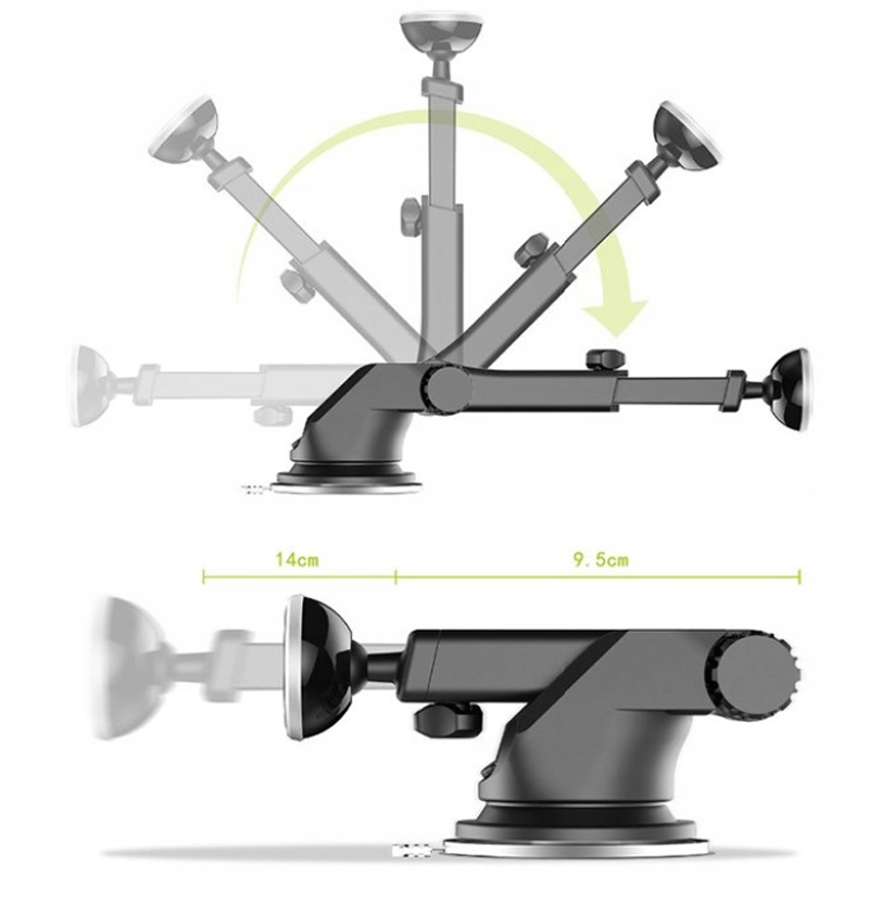 Magnetic car holder equipped with telescopic arm.