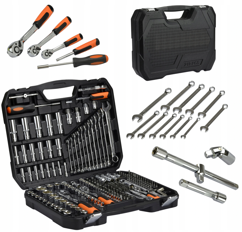 A set of high-quality wrenches, sockets and other tools necessary in every workshop (219 elements).