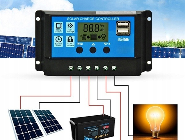 charges the batteries using the PWM method. Modulates the voltage range from 0 to 100%, which allows for quick and stable battery charging regardless of the weather and the state of the solar system