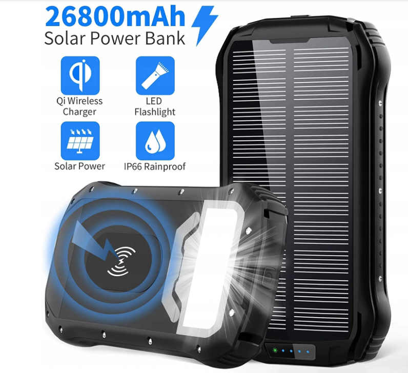 Power Bank Solar Qi Wireless Charger 26800mAh Large Capacity 26W