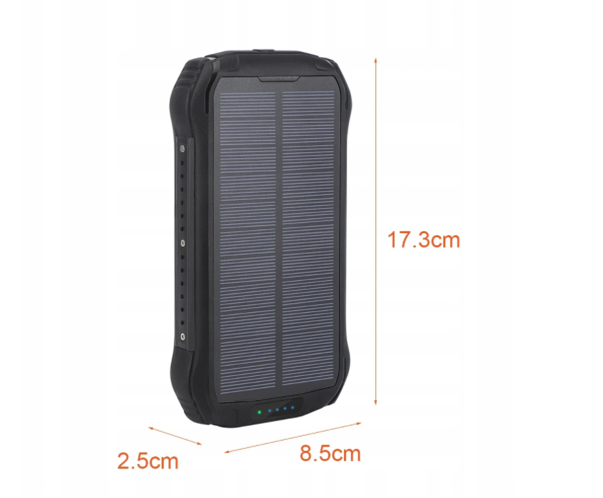 IP66 waterproof and drop-proof external battery: This solar panel can absorb sunlight and convert it into electricity. This is an additional feature that was developed for emergencies but not for the main power source. This power bank is waterproof and shockproof IP66. Multiple Protection System: Solar power bank provides protection for ICs from overload, over discharge, overvoltage, overcurrent and short circuit. It has CE / FCC / RoHS certificate.