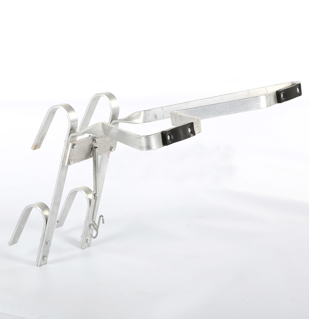 A multifunctional distance holder to be used with ladders with rungs, it will work as a support against a wall, support against a column (V profile).